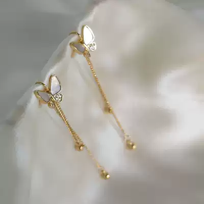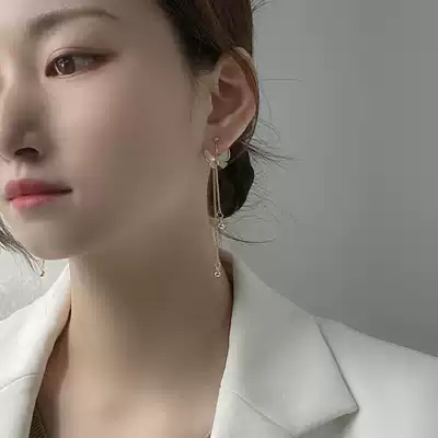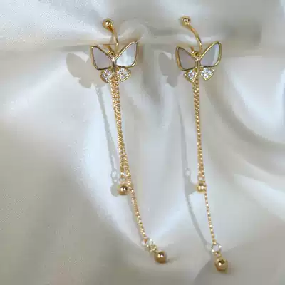 Fritillaria butterfly advanced sense earless female earrings French bow long version tassel painless mosquito coil ear clip