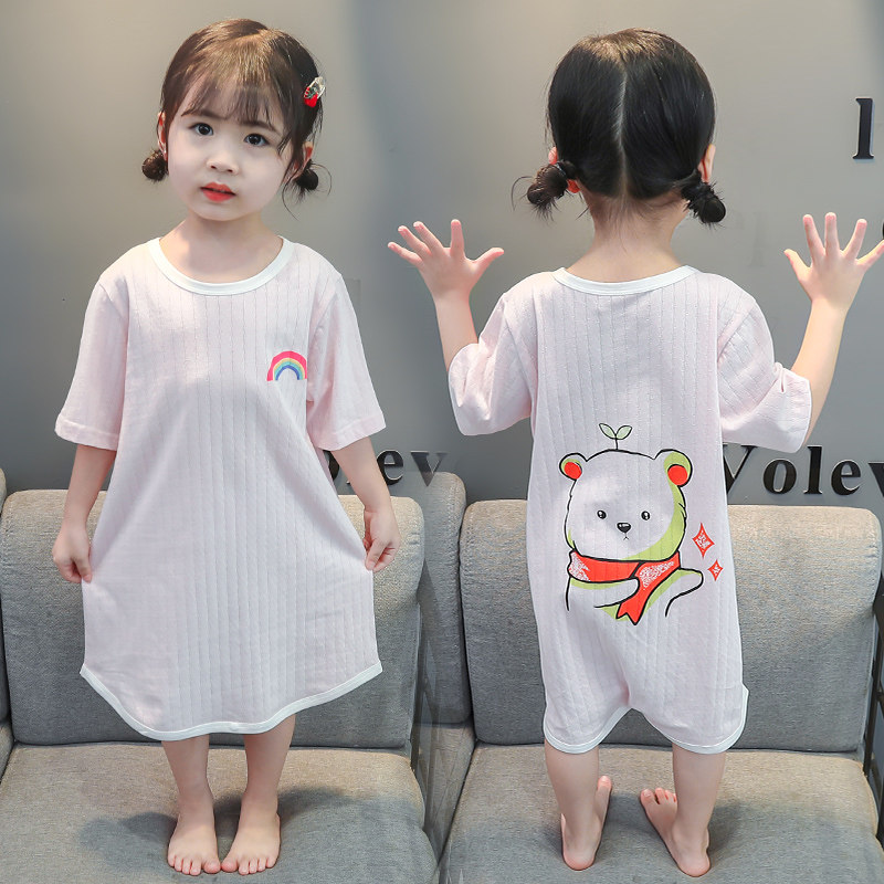 Girl Thin sleeping dress Baby Girl Pure Cotton One-piece Dress Summer Girl Home Skirt Kiddie Short Sleeve Air Conditioning Pyjamas