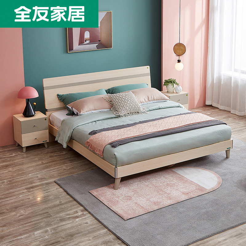 (Grab) All-Friend Home Modern Simple Bedroom Set Combination Double Mattress Wardrobe Set 106305