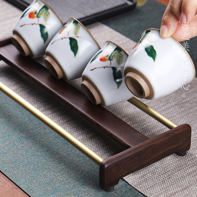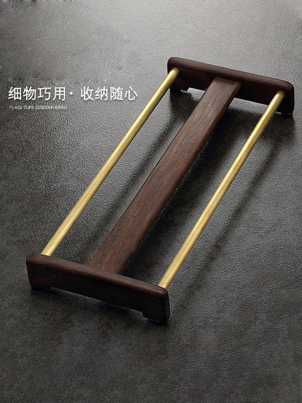 Gongfu tea cup rack storage layer rack tea ceremony spare parts drain rack red sandalwood copper Chinese double-layer drying creative wooden cup rack