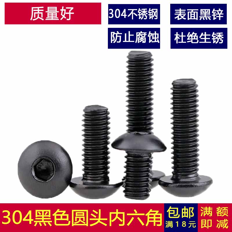 M2M2 5M3M4 black 304 stainless steel semi - circle hexagonal screw plated black galvanized plate cup bolt