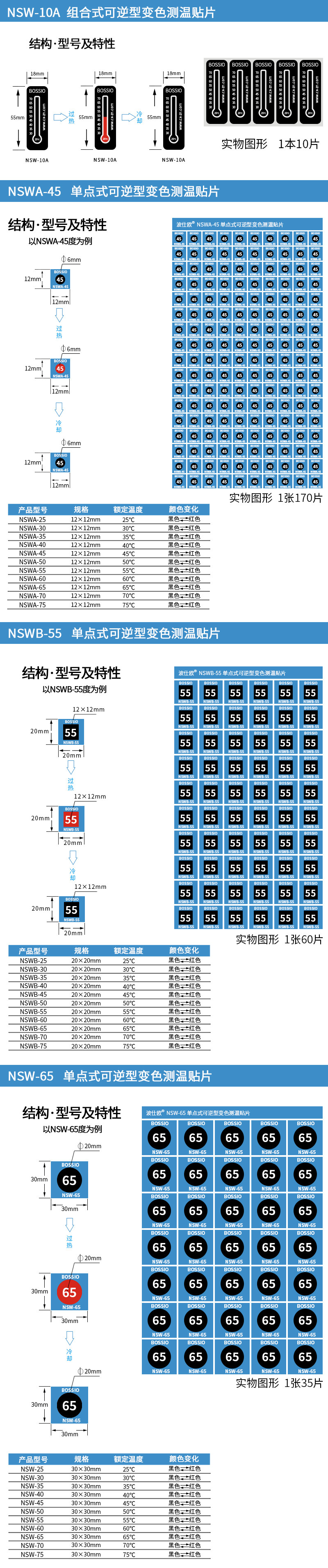 Posee eaux NSWB-55 reversible thermometry paper Warm Patches Repeat Discoloration Temperature Stickers to catch warm labels Waterproof