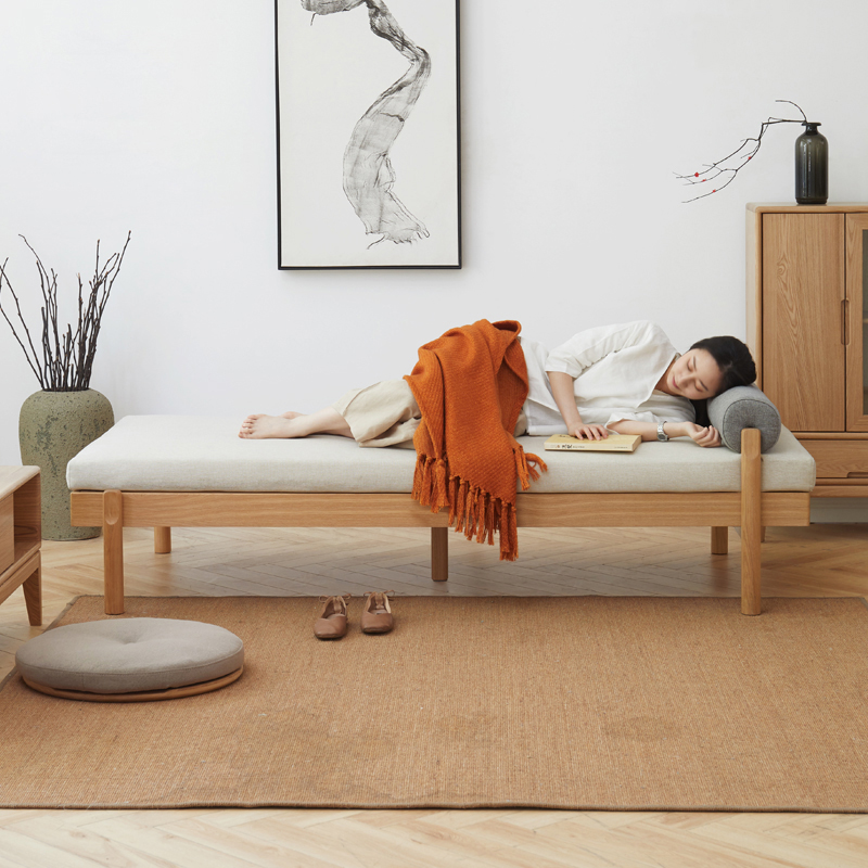 Fangdi new Chinese style fabric sofa bed living room sitting and sleeping all solid wood single daybed small apartment lunch break bed