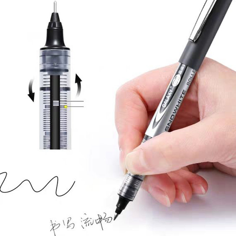 Baixue PVR155 black straight liquid water-based ballpoint pen red blue bullet full needle tube signature gel pen