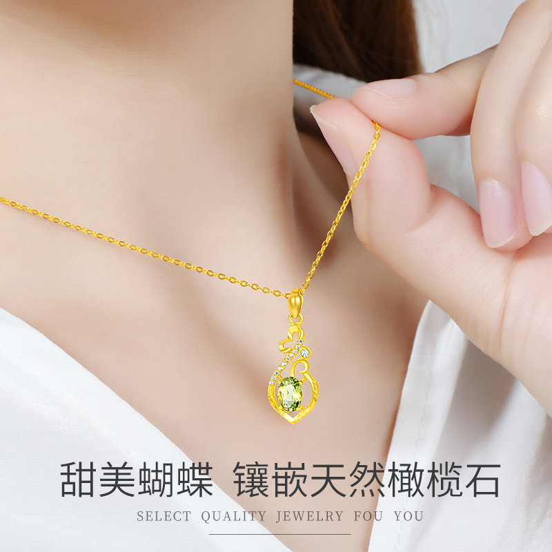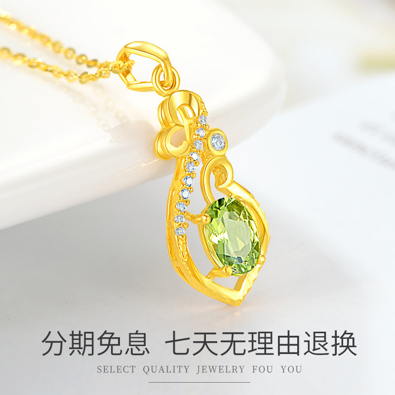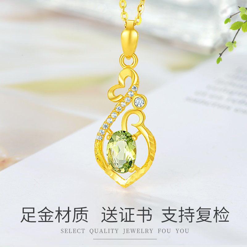 Pure gold peridot pendant (with pure gold necklace) Pure gold peridot pendant (with 18K gold necklace) Pure gold peridot pendant (with silver-plated necklace)