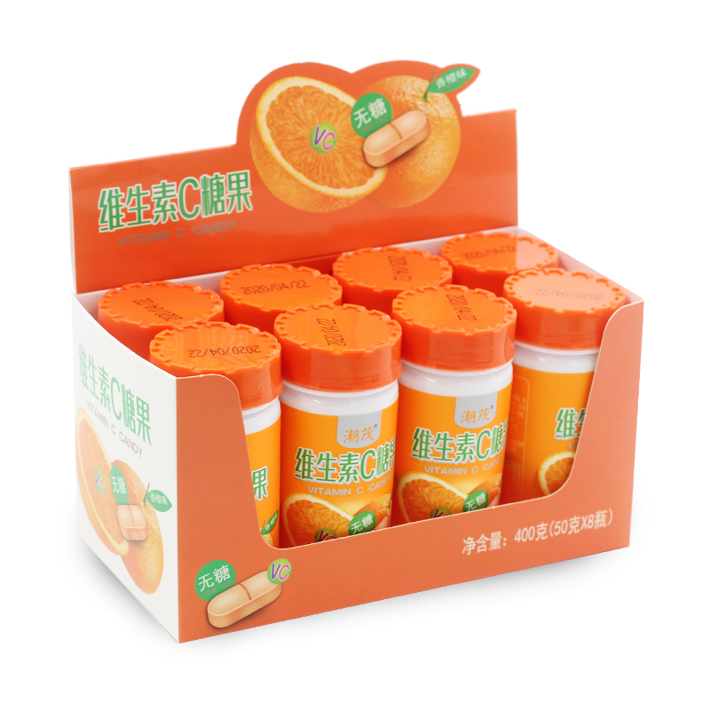 Sugar-free Vitamin C lozenges Candy 50g*8 bottles Children's adult vitamin VC orange flavor chewable tablets Snack products