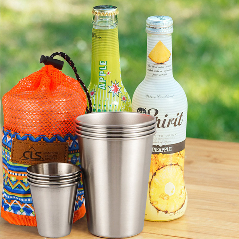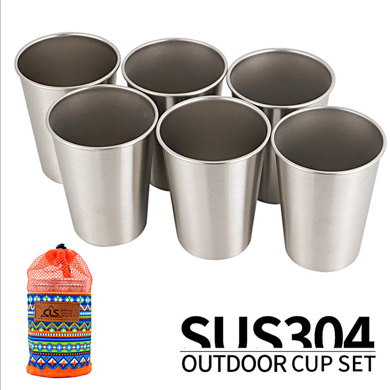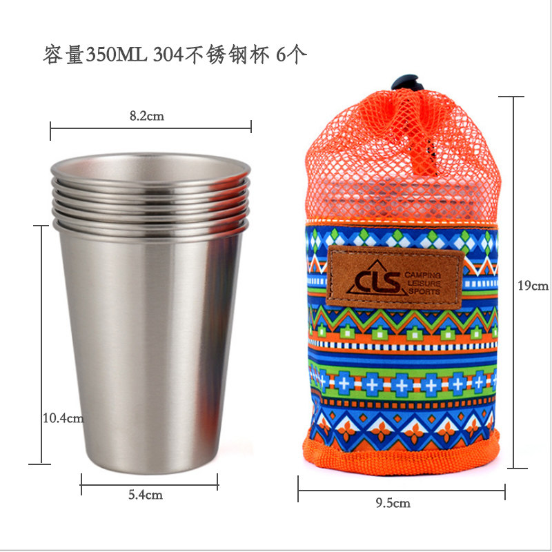 Outdoor Folding 304 Stainless Steel Beer Mug Coffee Cup Tea Cup 6-Piece Set Outdoor Camping Portable Cup