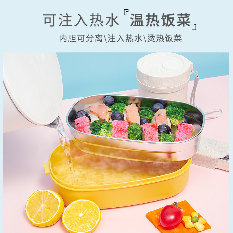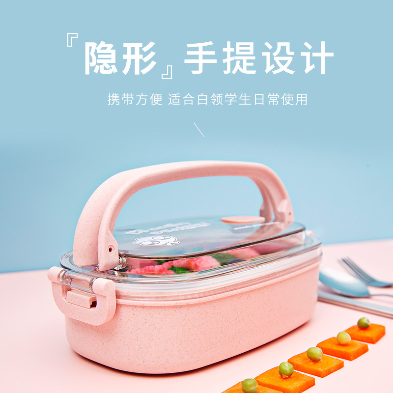 (80% of people choose) pink double layer send 304 chopsticks spoon fork-powder soup cup-powder insulated bag green send 304 chopstick spoons fork three-piece-double-blue insulated bag
