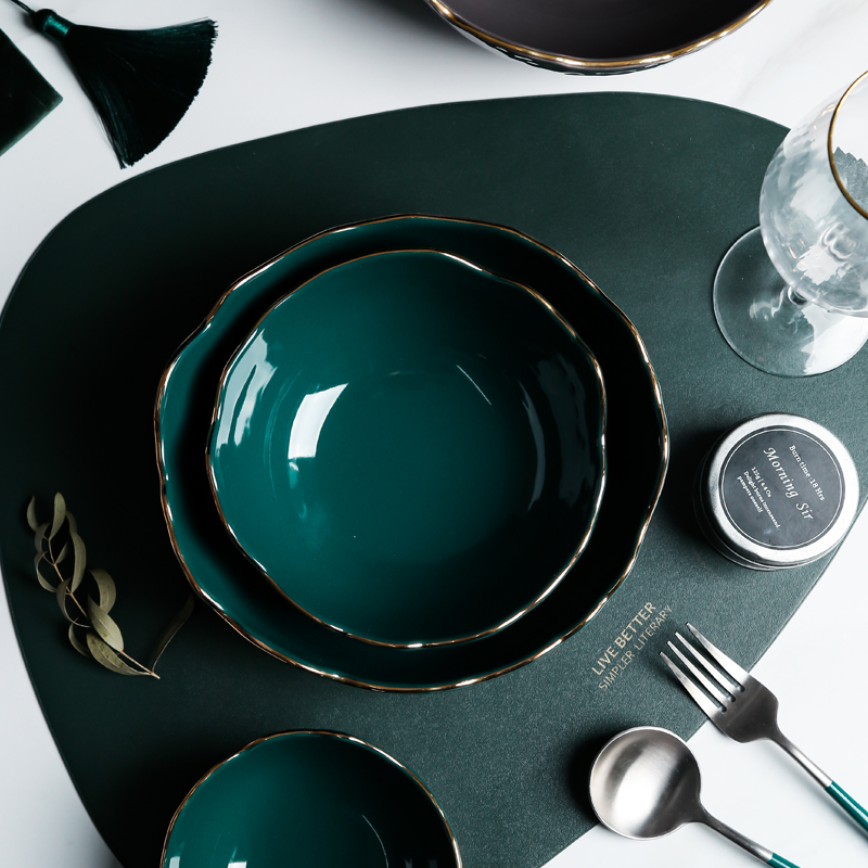 Nordic light luxury emerald Phnom Penh creative home large fruit plate breakfast thick soup bowl ceramic salad bowl single