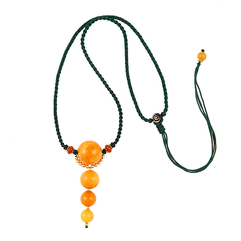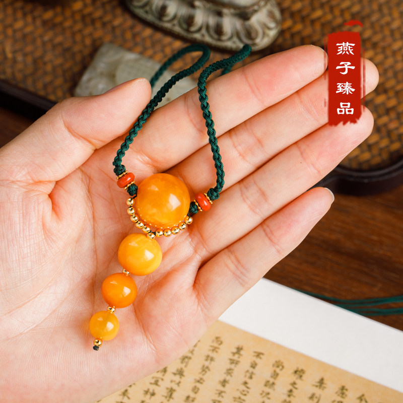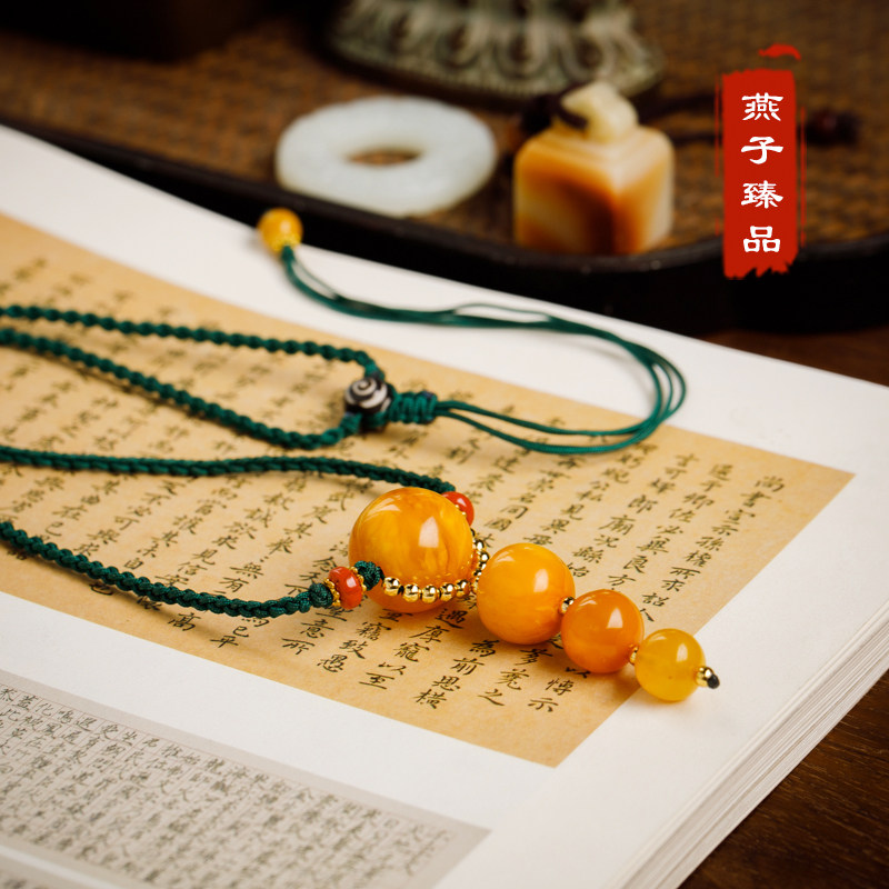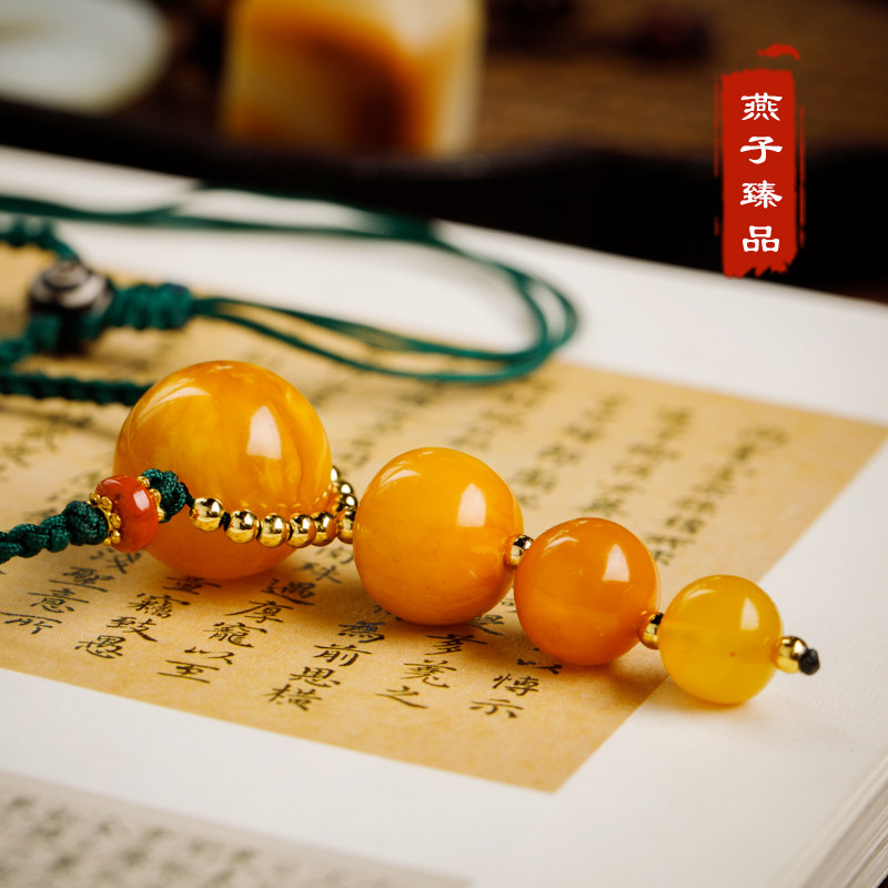 (Yanzi Zhen) 5 64 gr Natural old nectar wax Yuanzhu pearl necklace with chicken oil yellow amber pendant male and female