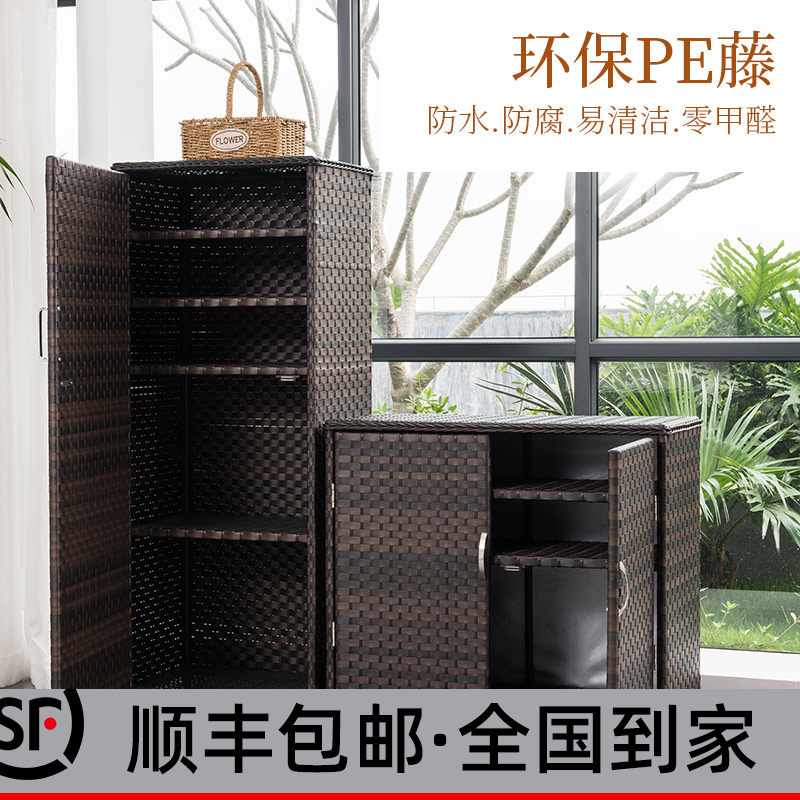 Dream house rattan balcony shoe cabinet single and double door multi-layer storage cabinet outdoor courtyard garden storage sundries cabinet