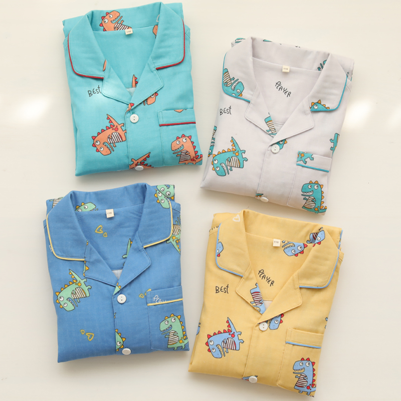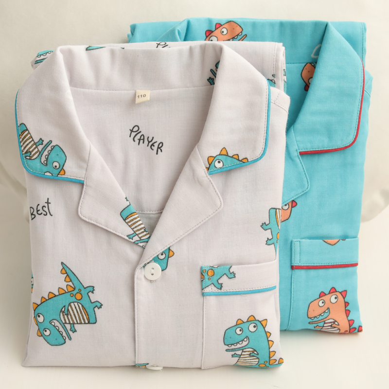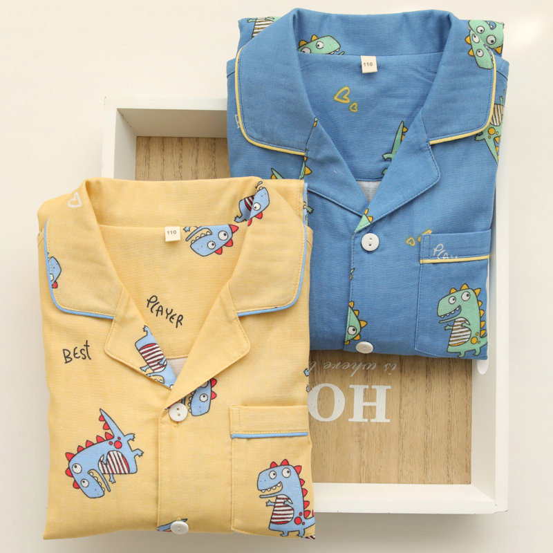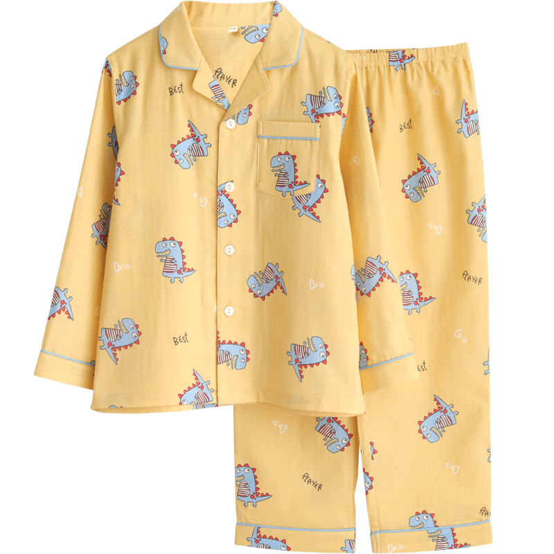 Boys' home clothes summer air-conditioned room thin section long-sleeved spring and autumn cartoon little dinosaur children's pajamas two-piece suit