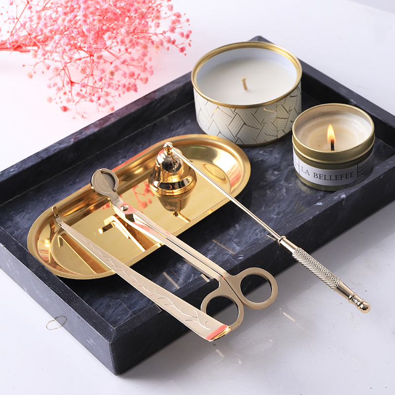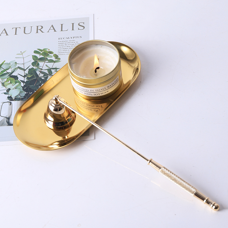 Scented candle candle extinguisher Three-piece tool set diy igniter candle extinguisher hook cover metal gold-plated tray
