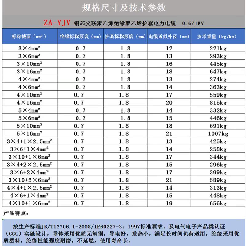 Starting sail ZB-YJV 3 Core 4 Core 5 Core 3 Core 1 3 Core 2 4 Core 1 Flame Retardant Power Cable National Standard Pure Copper