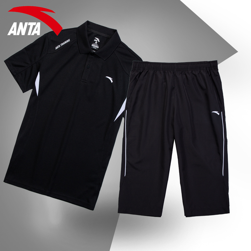 Anta Sports Suit Men's Summer Breathable Short Sleeves Seven Pants Two Sets Officer Net Flagship Men's Sportswear Men Sportswear