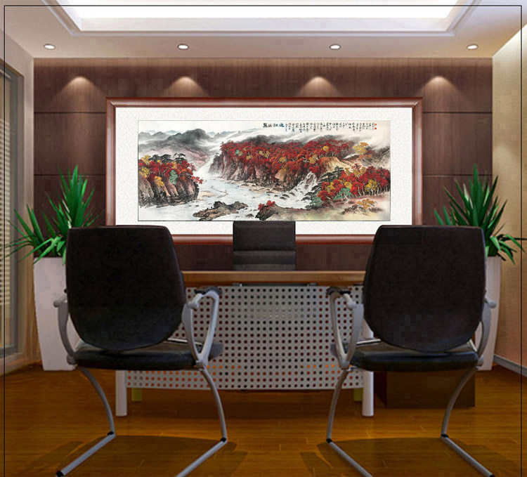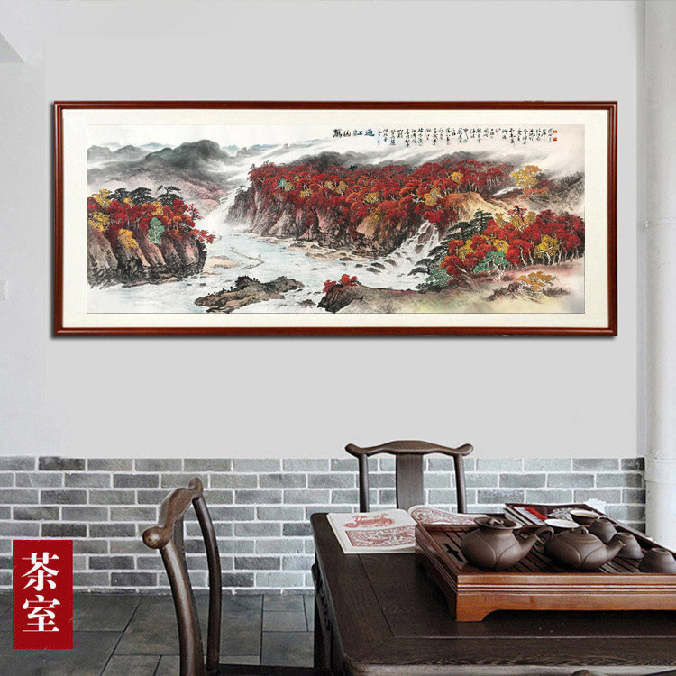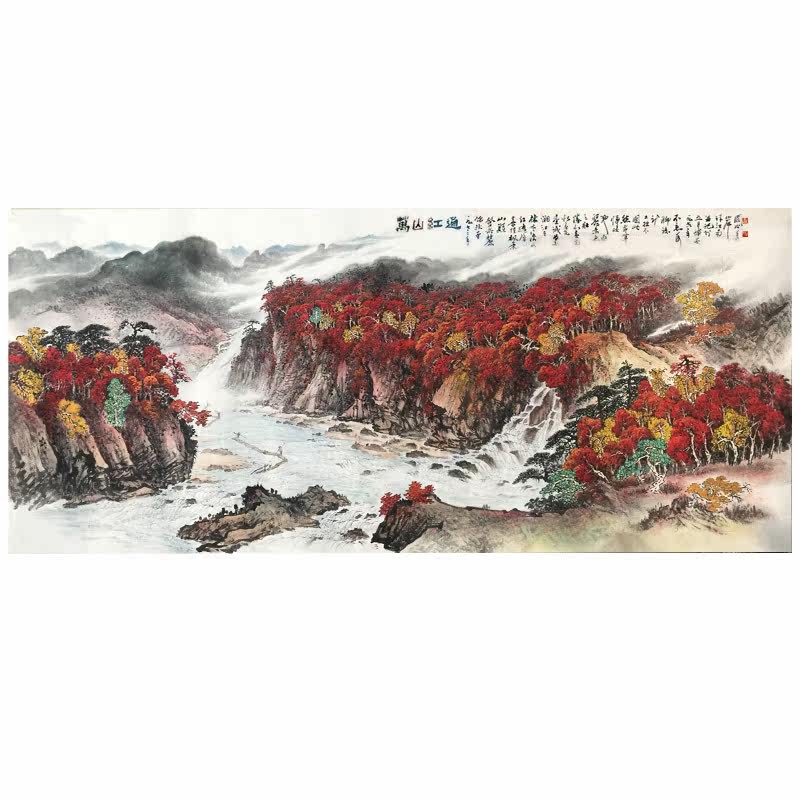 Hand painted Wanshan Red Painting Guan Shan Moon Landscape Painting Autumn Brook's Raft Office Living Room Decoration Painting and Fortune Hanging Paintings