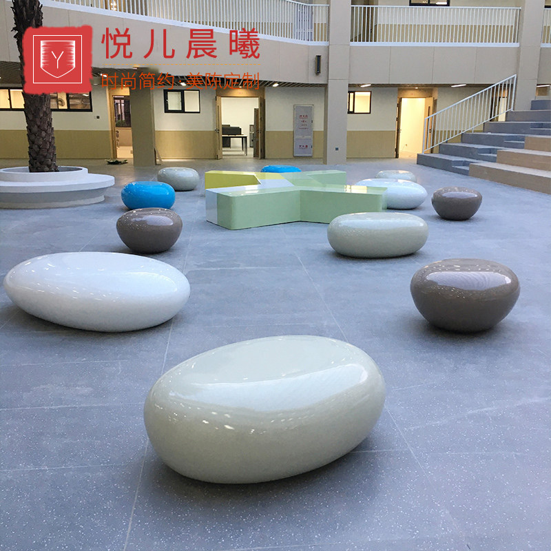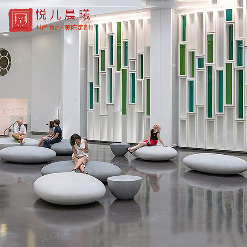 GRP Goose Pebble Casual Sitting Stool Oval Seat Mall Waiting Stool Creativity Commercial Street Outdoor Leisure Chair-Taobao