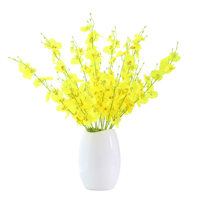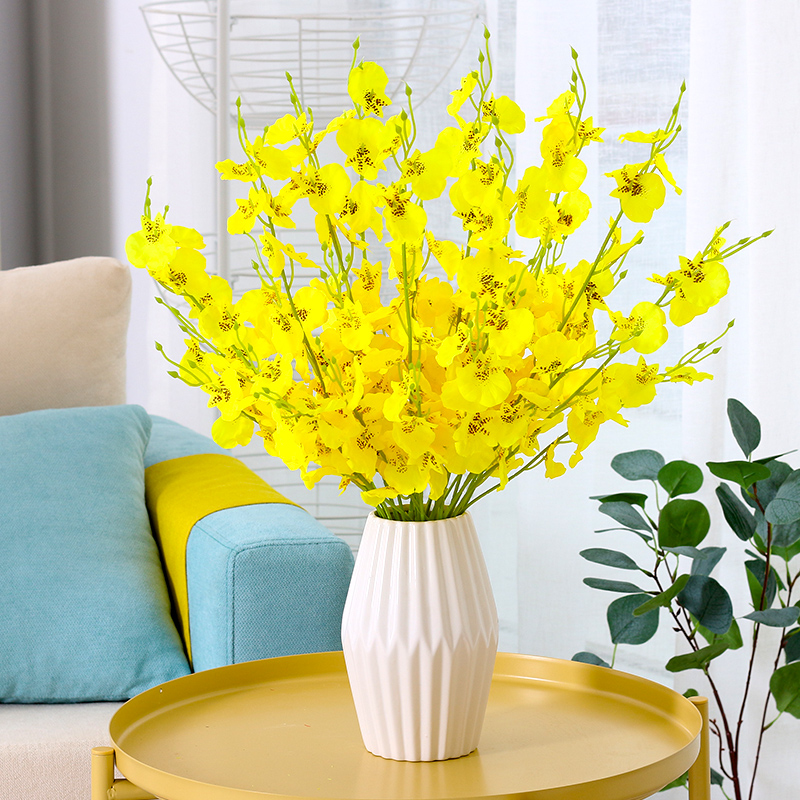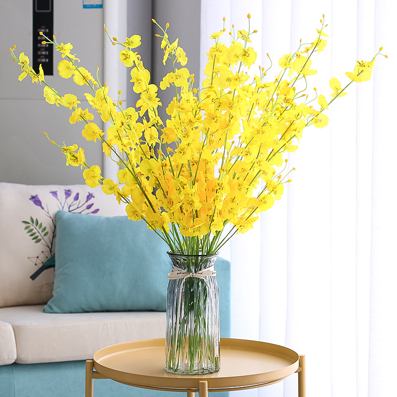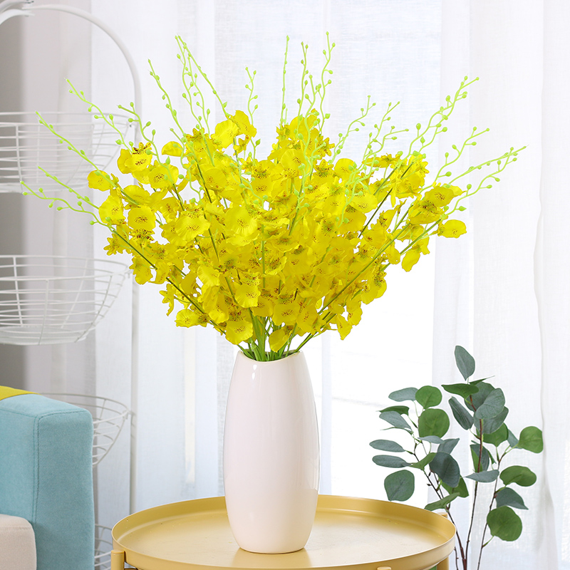 Yellow dance orchid artificial flower fake flower dry bouquet home living room ornaments set dining table TV cabinet floral decoration