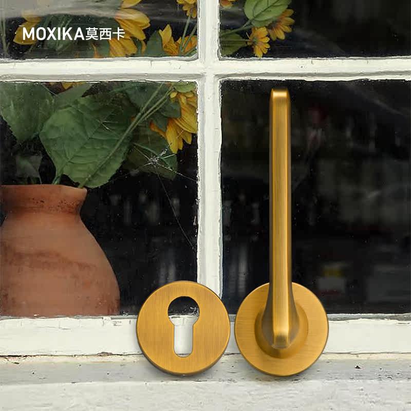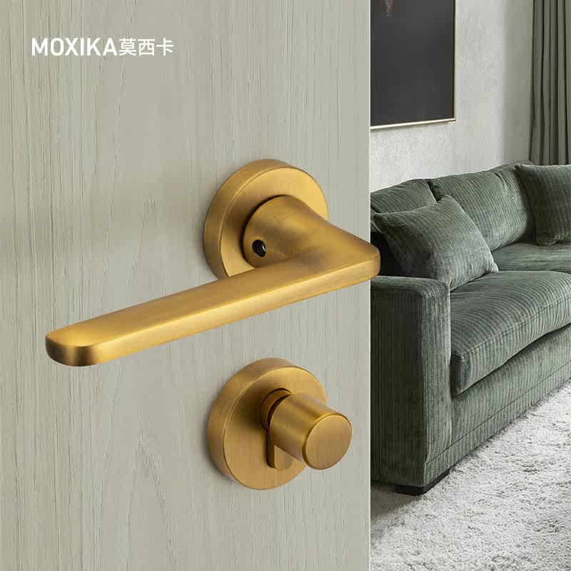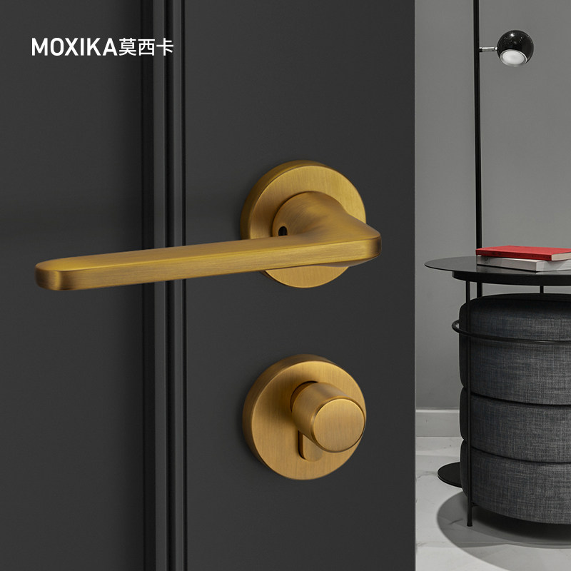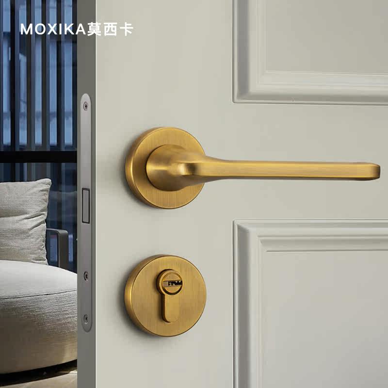 Mosica silent door lock indoor Nordic bedroom magnetic lock three-piece complete set of brass-colored wooden door pure American door