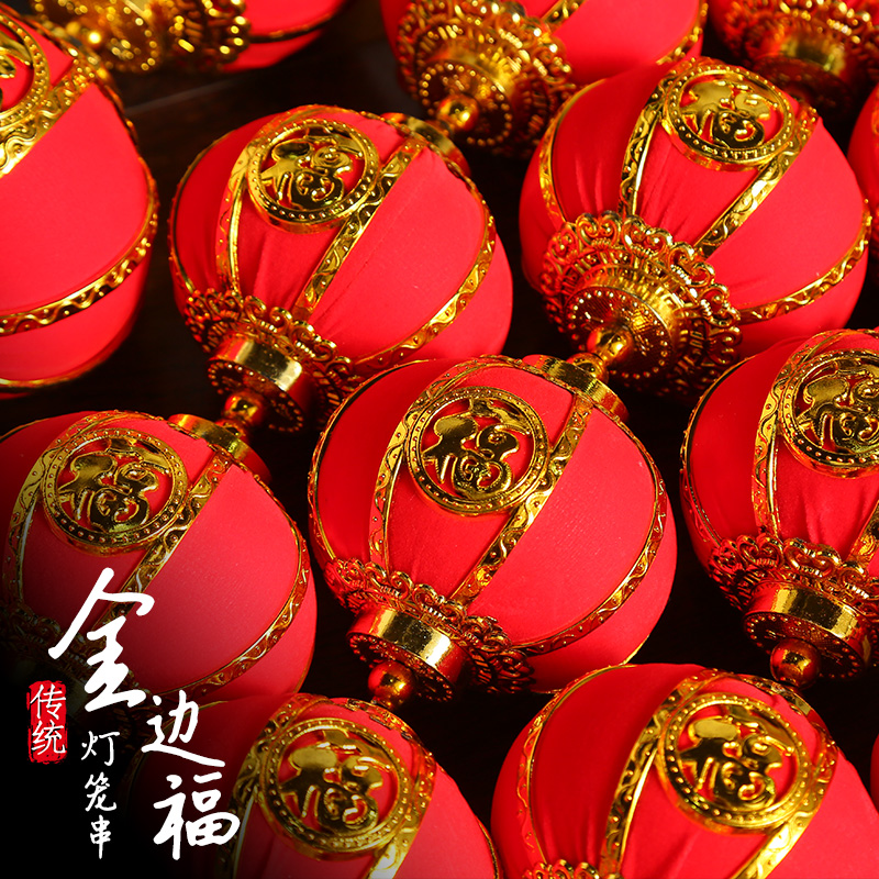 Jo Relocation New Residence Large Red Flocking Fu Lantern String Hanging Decoration Outdoor Scene Arrangement Decoration Newlywed New Year Supplies Pendant