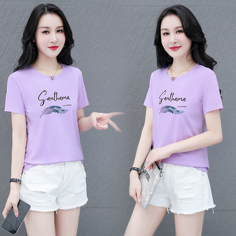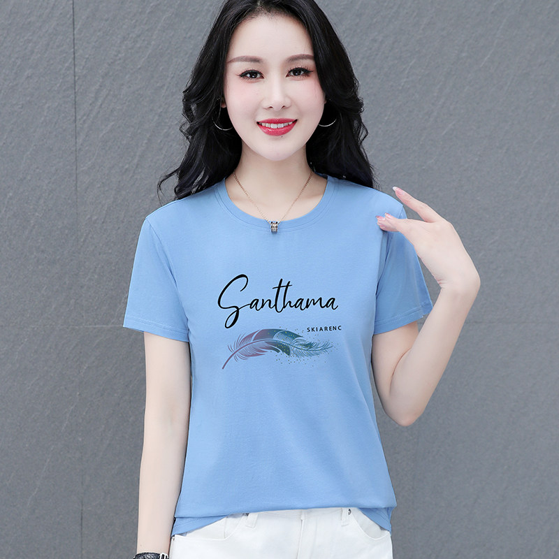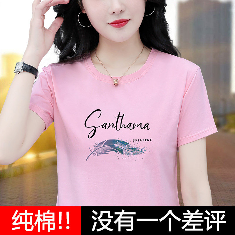 Lower T-shirt woman short sleeve woman dress 2022 new wave mom middle age large size loose blouse summer fit 100 lap pure cotton