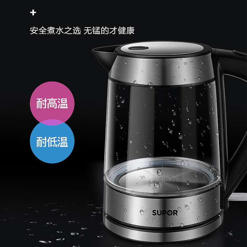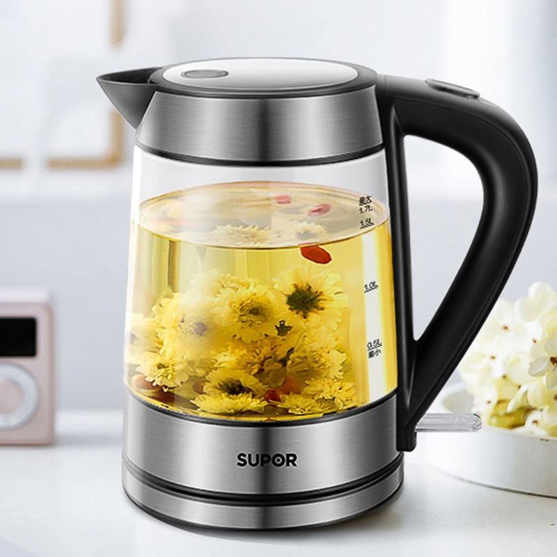 Supor electric kettle kettle household glass kettle automatic power off 304 stainless steel electric teapot