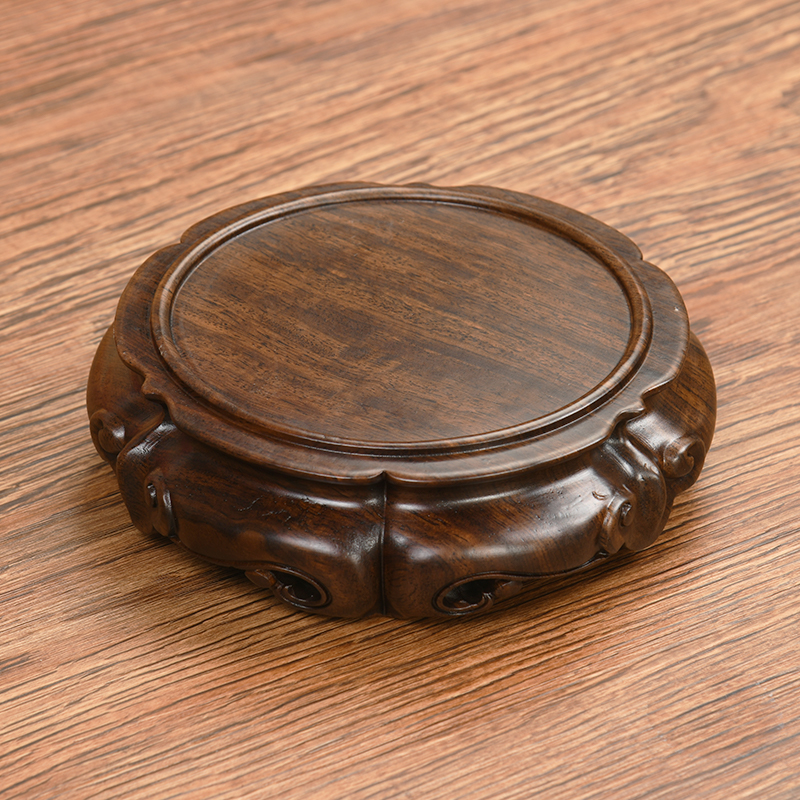 Red Wood Engraving Black Sandalwood Solid Wood Round Base Bonsai Pendulum Pieces Log Base Chite Jade Ware Purple Sand Teapot Base