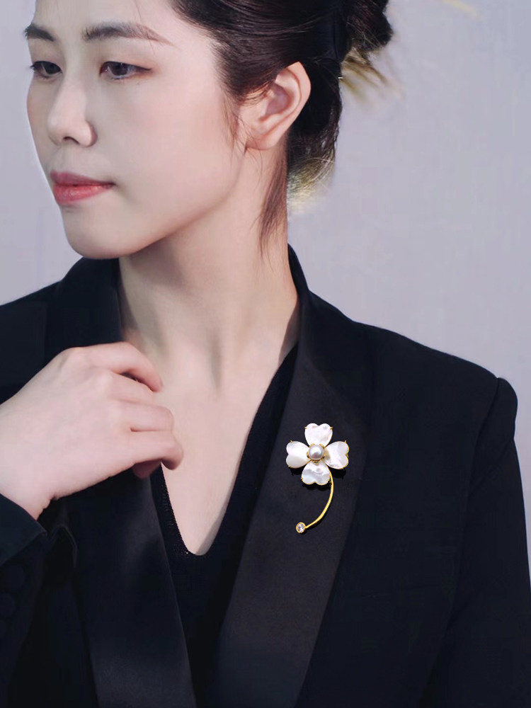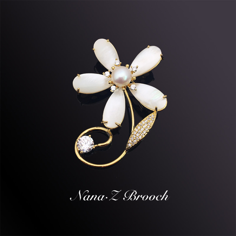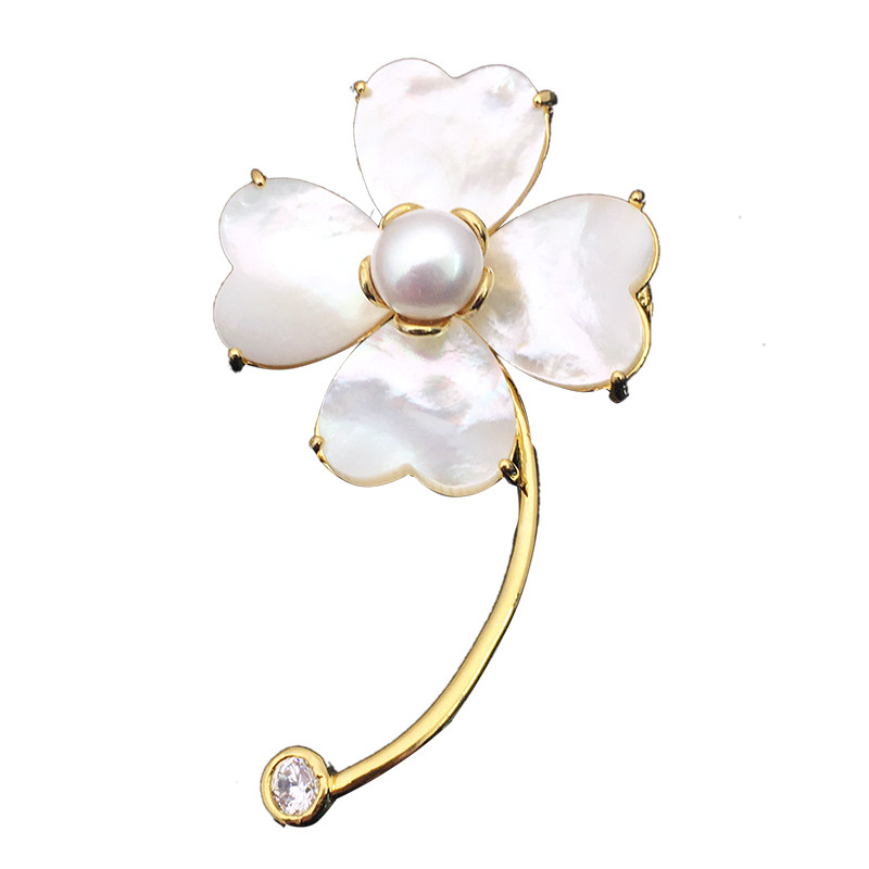 Natural Shells Lucky Flowers Pearls Reworked Micro-Inlaid Brooch Brooch Brooder Woman Upscale Suit Evening Gown Accessories