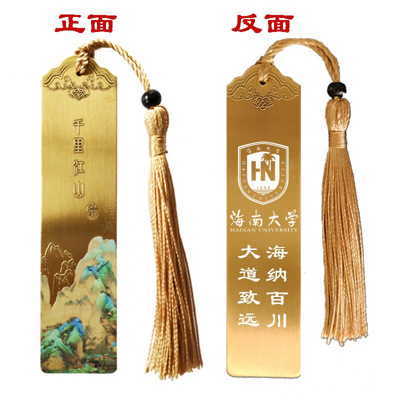 Hainan University Souvenir School Badge School Motto Bookmark Laser Engraving Brass Bookmark Graduation Gift customization