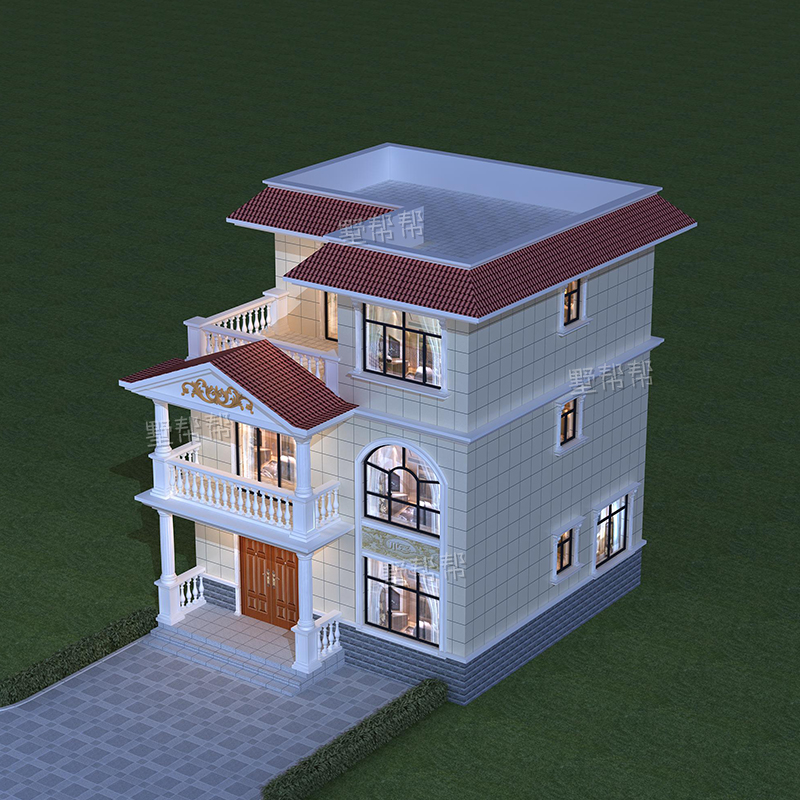 Three-storey European-style villa design drawings Rural self-built house full set of effect construction belt hydropower villa help 91129