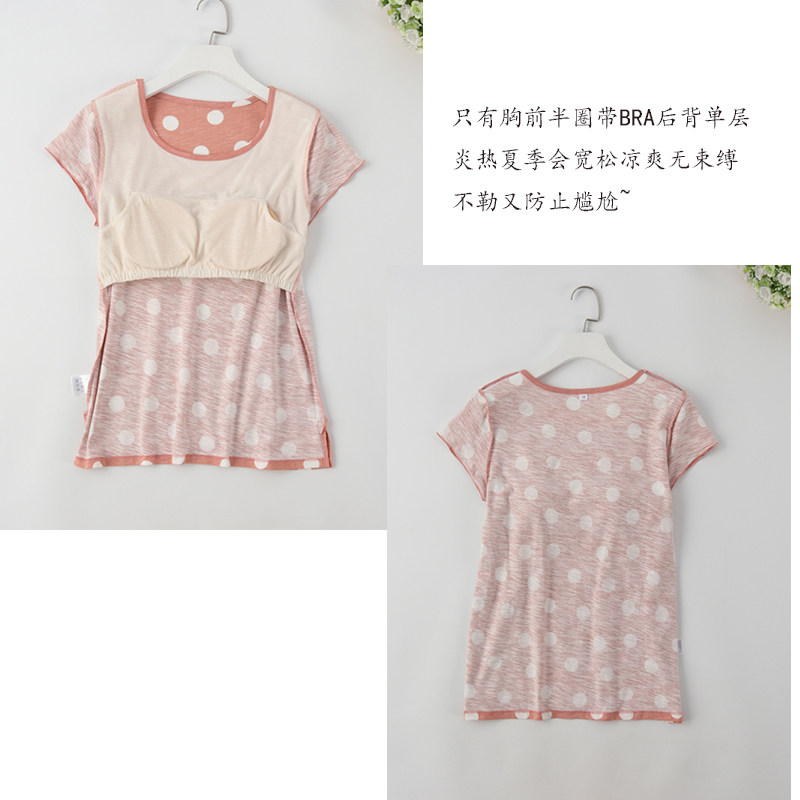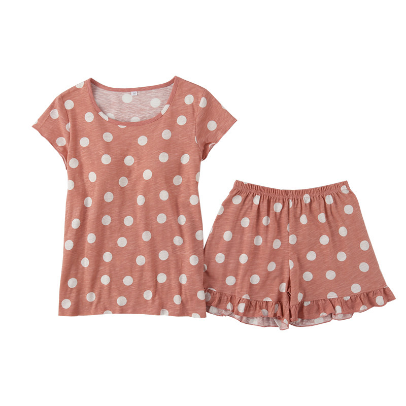 Women's knitted cotton slub cotton with breast pad cup cover BRA pajamas Short sleeved shorts homewares suit Summer thin section