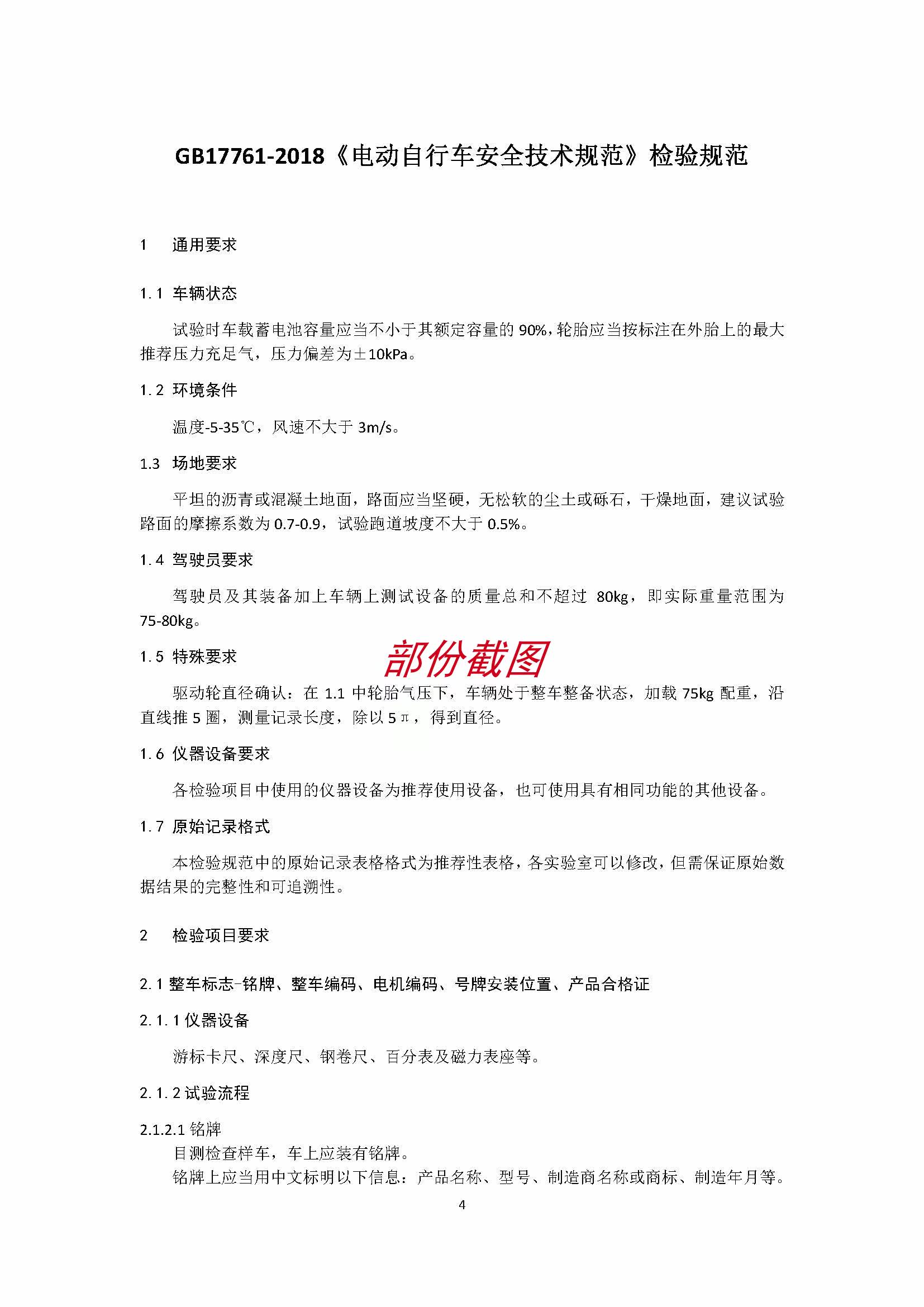 GB17761-2018 "Technical Technical Specification for Electric Bicycle Safety" Inspection Information