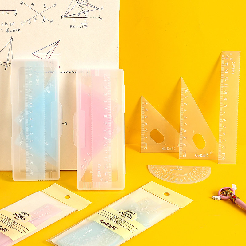 Triangular plate ruler suit elementary school student stationery ruler four pieces of kit minimalist set foot nursery school study prize wholesale