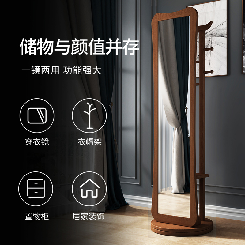 Solid wood full-length mirror vertical mirror home floor-to-ceiling mirror new Chinese-style multifunctional full-length mirror bedroom rotating hanging clothes mirror
