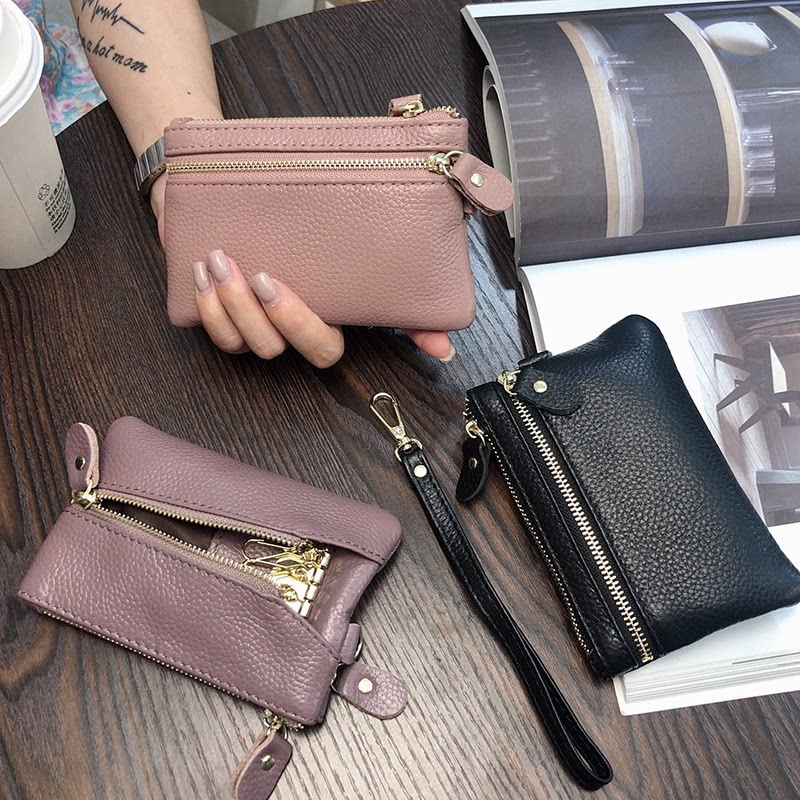 Genuine leather Mini small key bag button multifunction minimalist soft cow leather zero wallet male and female universal key bag