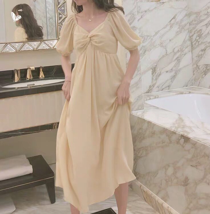 French pregnant woman summer dress with orange terrier first love skirt, super fairy snow spinning dress woman summer pregnant woman clothes