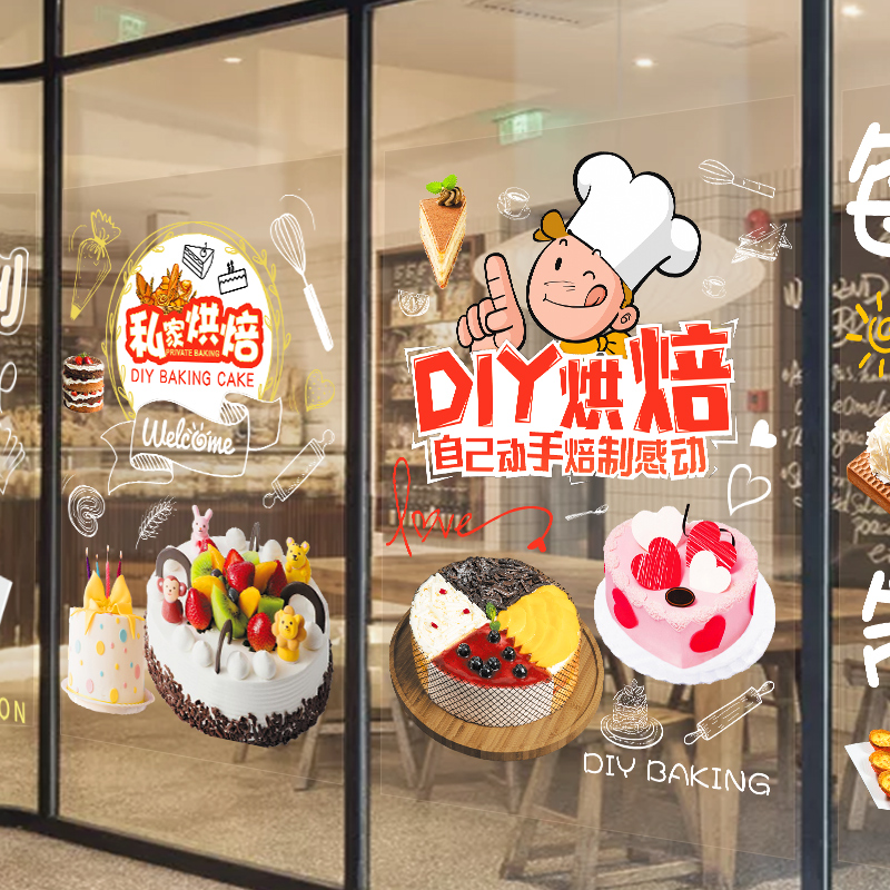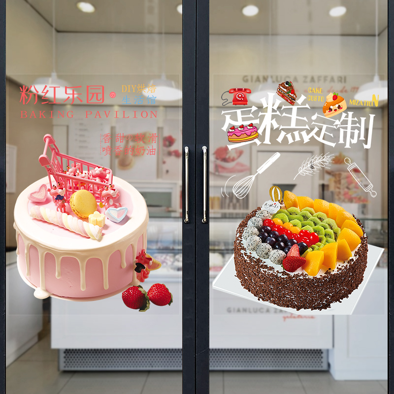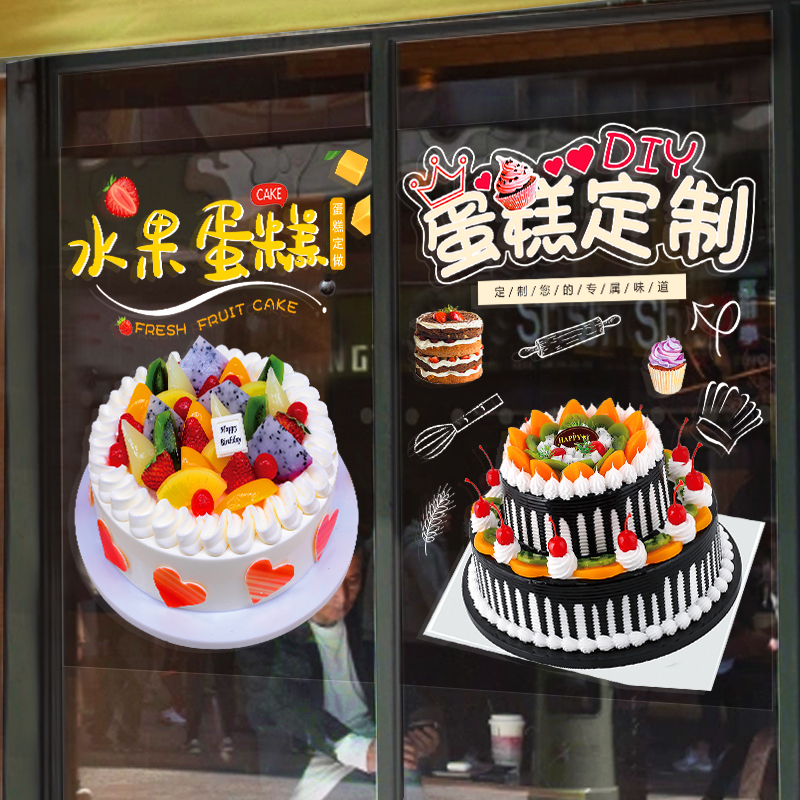 Custom birthday cake glass sticker baking bakery picture design wall sticker shop window creative poster