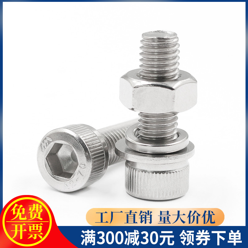304 stainless steel inner hexagonal screw nut suit bolt cup head screwed flat cushion with large full M3M4M5M6