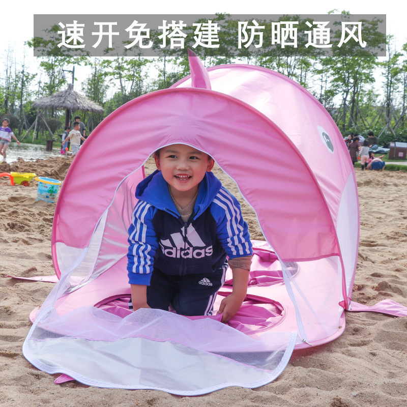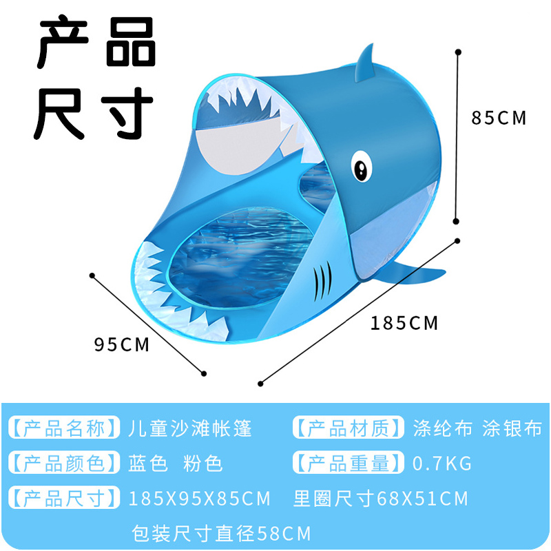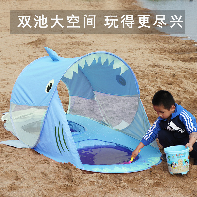 Automatic construction-free children's beach tent Children's seaside sunscreen double game house Water shark awning
