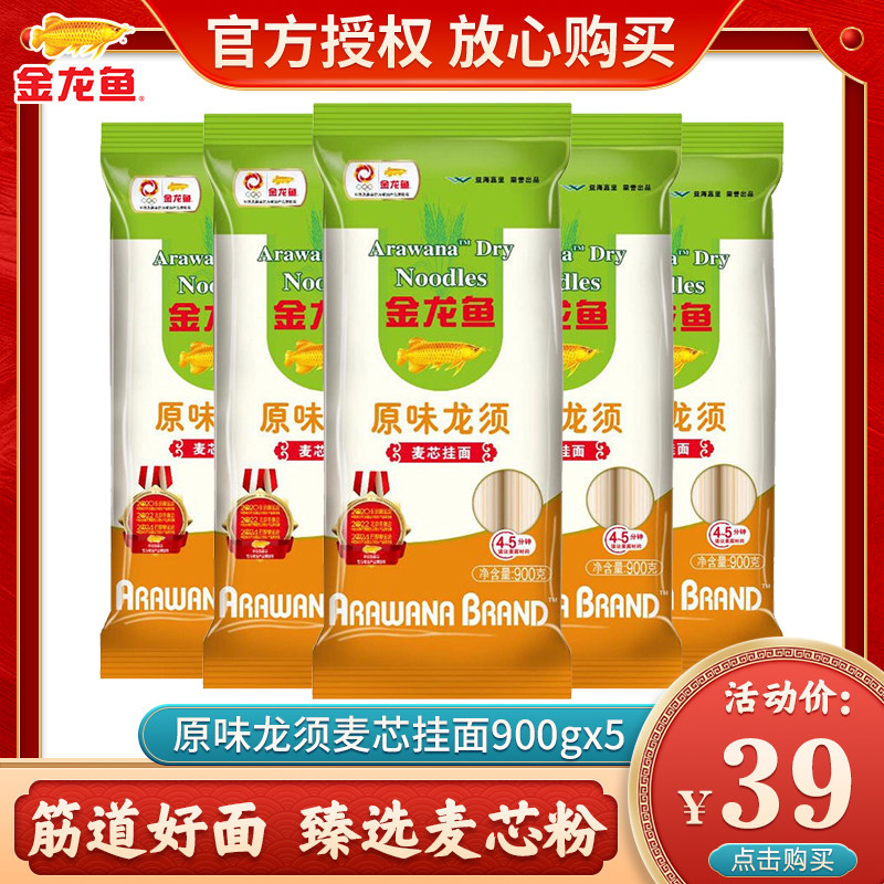 Arowana Wheat Core Noodles Longxu Noodles Household Noodles Convenience Food Dormitory Noodles Family Pack 900g*5