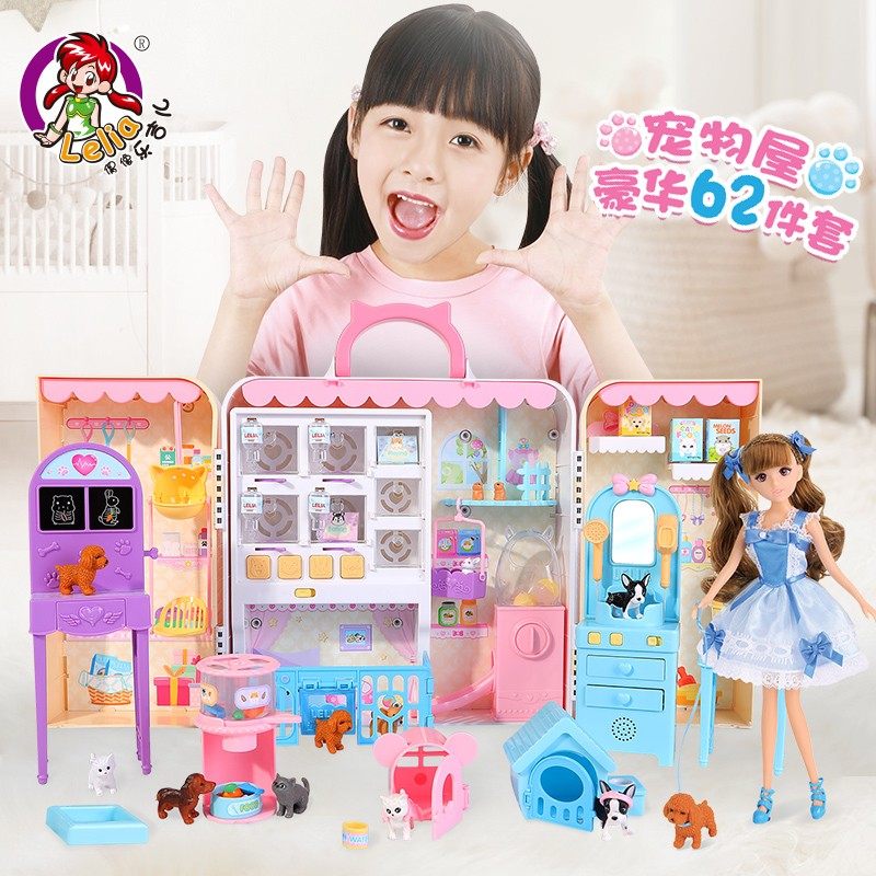 Cute pet development house toys toys girls live house Mini pet care shop Feeding cats and dogs Funny handbag