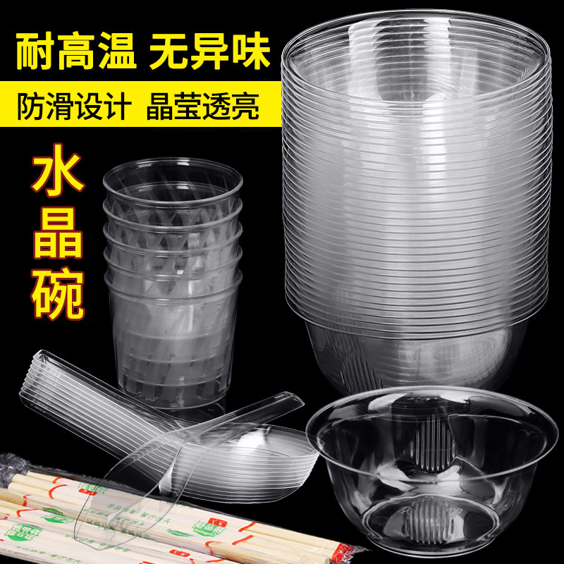 Disposable crystal bowl home tableware hard plastic transparent aviation hot pot soup bowl banquet tableware food grade set