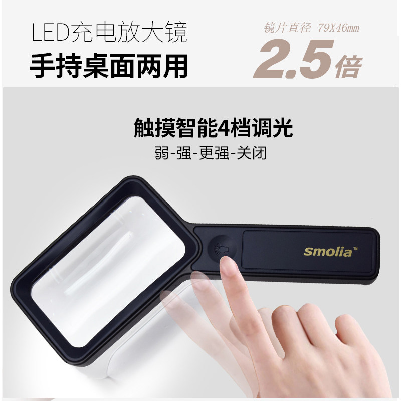 Enetty magnifying glass smolia charging magnifying glass handheld square reading aid visual magnifying glass for old gifts Removable stent LED lights three stage dimming to make eyes more comfortable