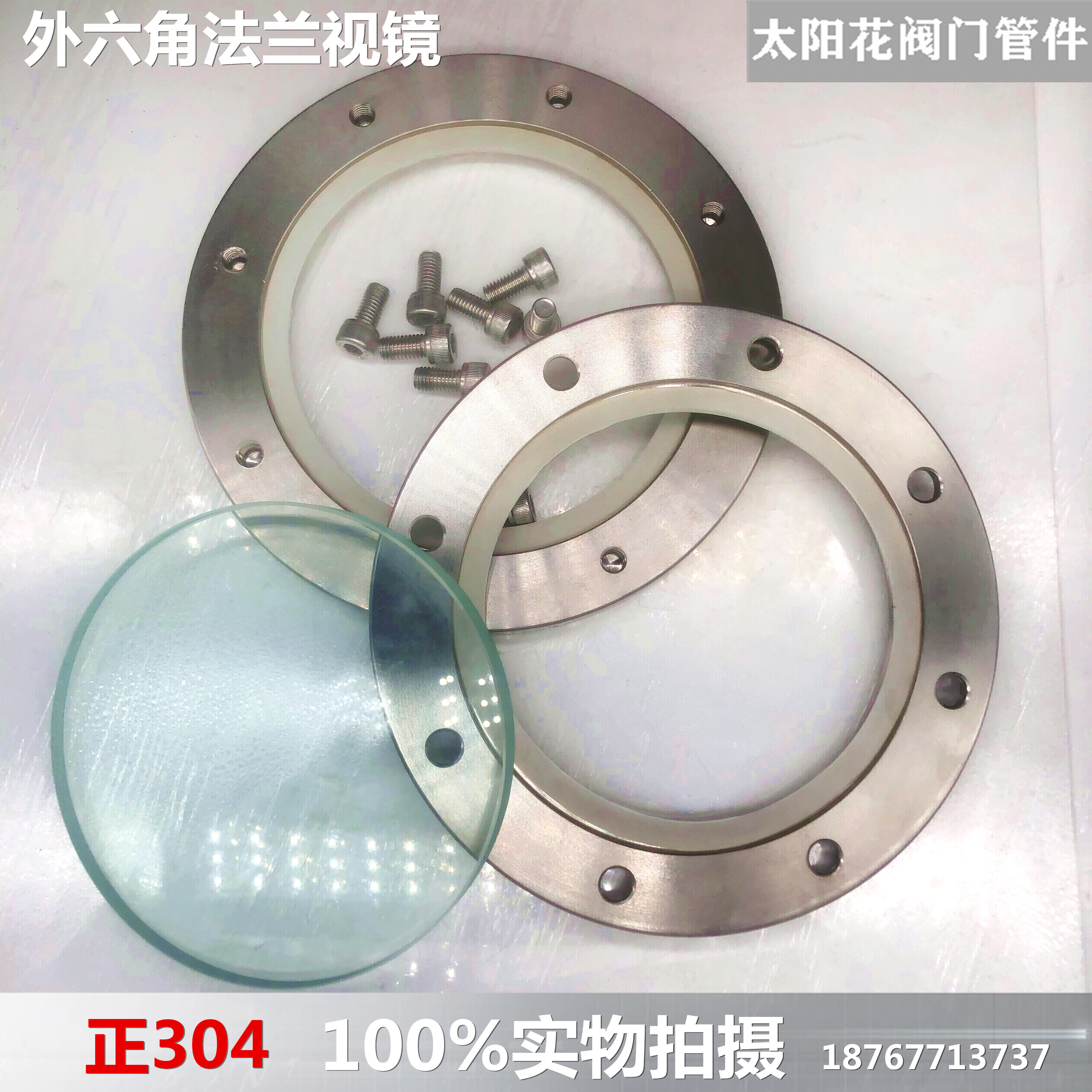 304 flange sight mirror clip-on manhole glass observation mirror 316L sight mirror tempered glass inner hexagonal stainless steel