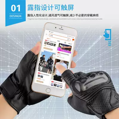Motorcycle summer riding half-finger leather gloves locomotive retro anti-fall Knight breathable Dennis sheepskin men and women