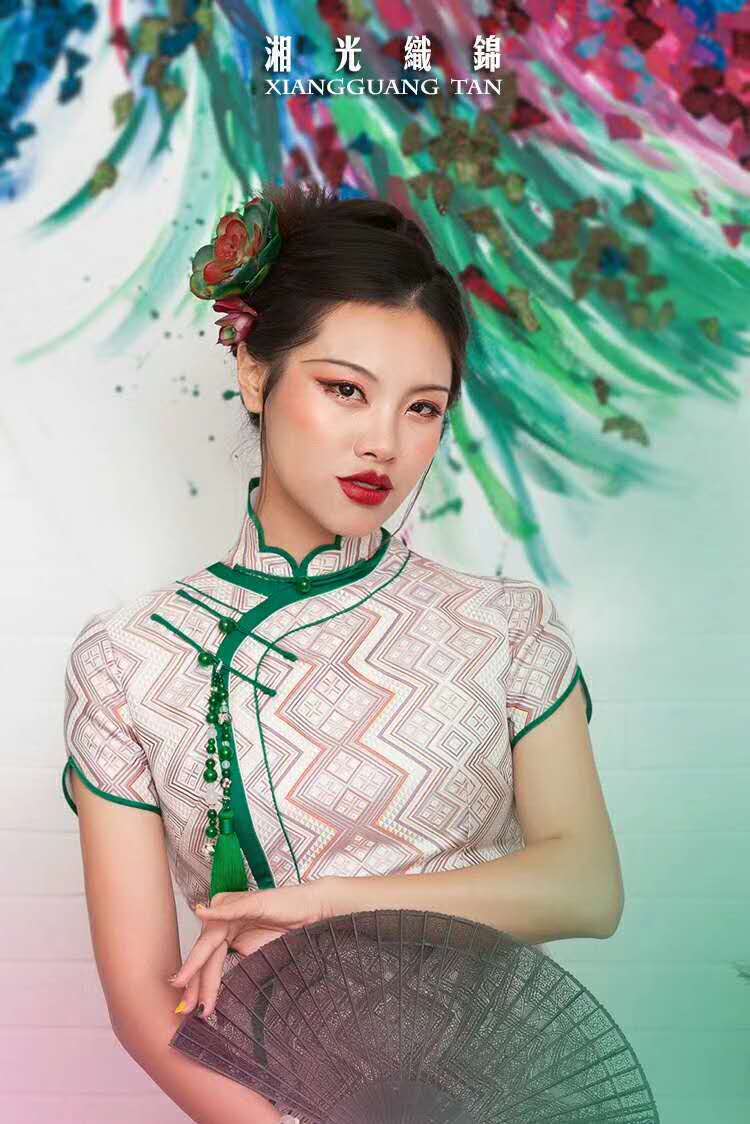 The width of 2.8 meters Xiangguang brocade original zhuang brocade silk fabric national characteristics style is light and elegant