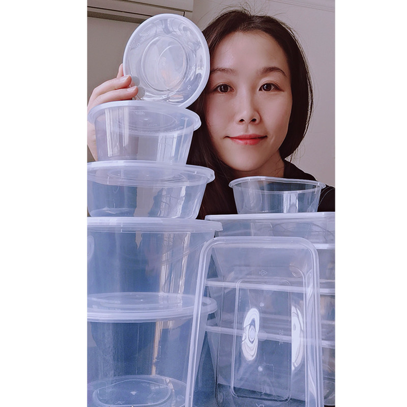 Disposable packed fast food box round rectangular transparent with lid lunch box soup bowl transparent thickened delivery box
