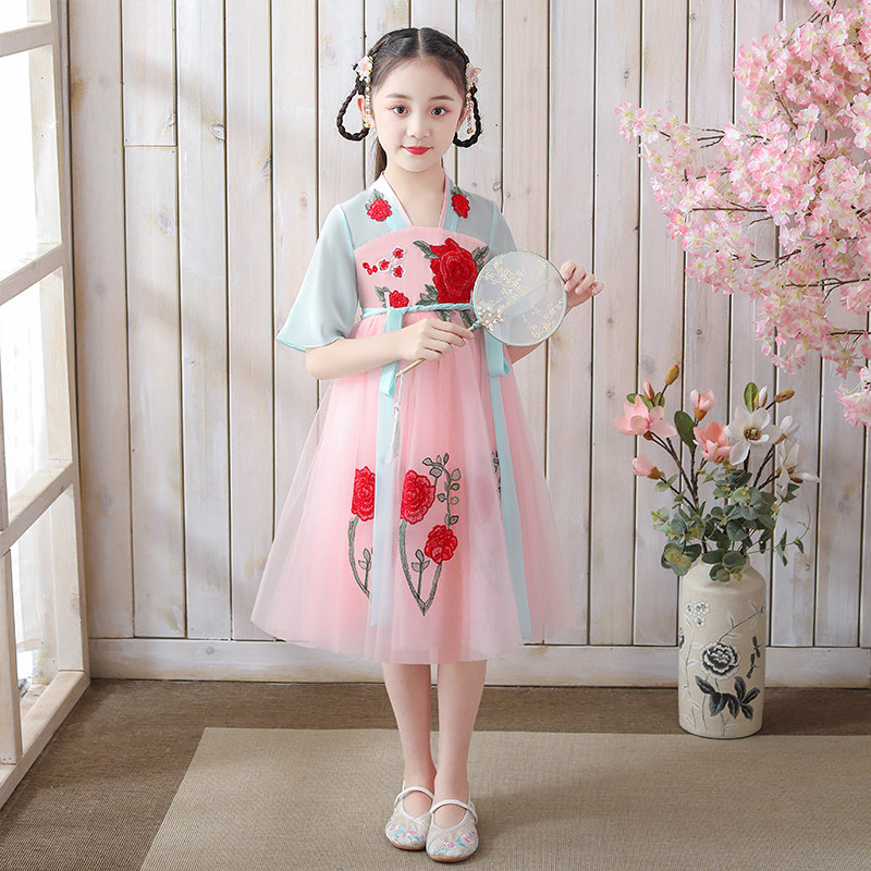 Girl's Han Wears Summer Dress New Chinese Old Yellow Girl Antique Princess Dress