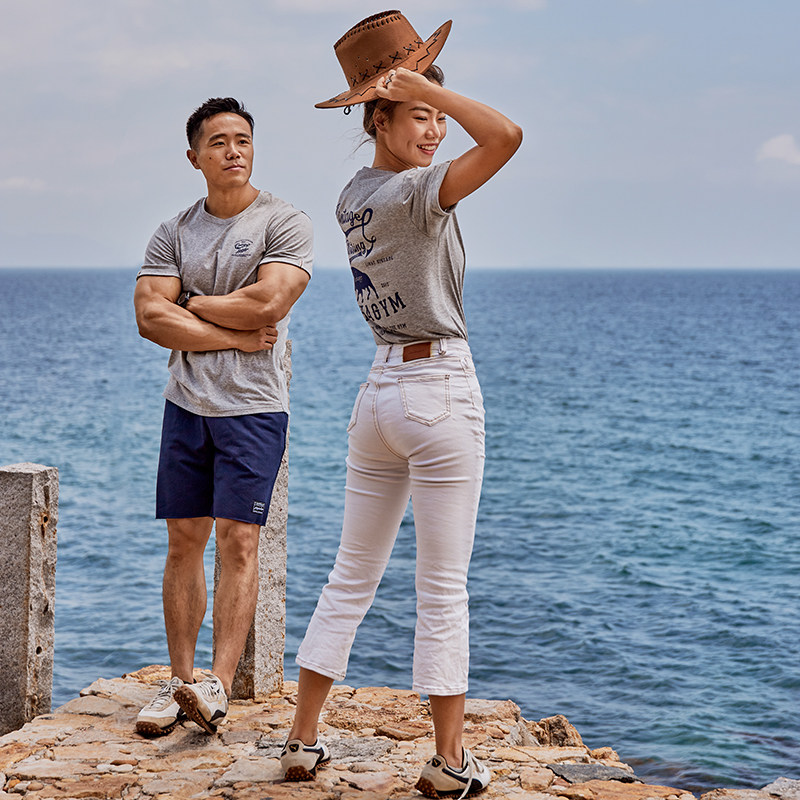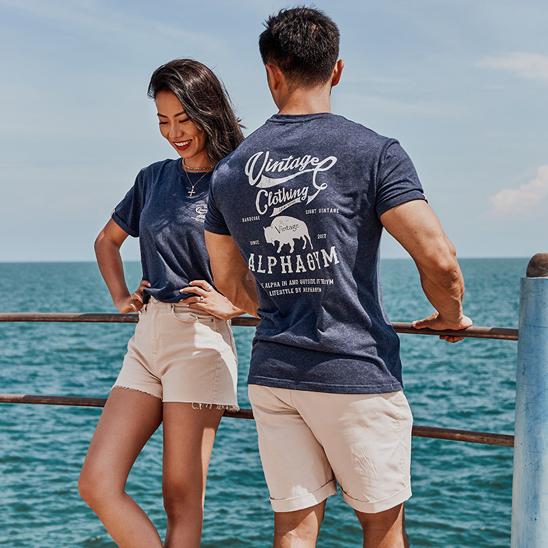 AlphaGym printed lovers short sleeves blouses lovers round the bull year T-shirt Summer American bull head print casual