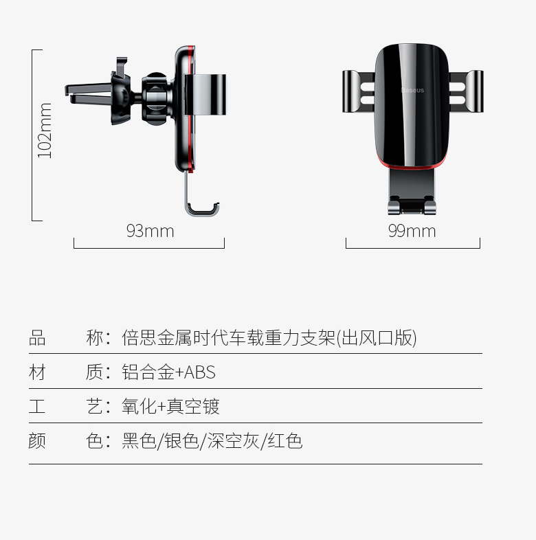 Baseus Metal Age Car Gravity Bracket Air Outlet Navigation Mobile Phone Bracket Auto Supplies Universal Creative